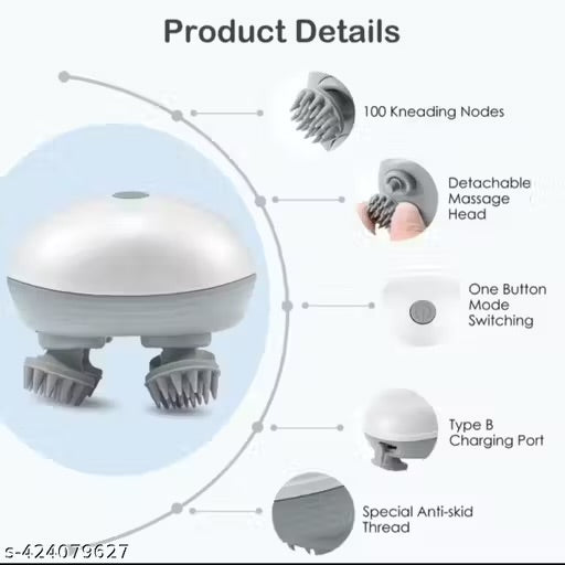 Experience deep relaxation and effective scalp stimulation with the Head Scalp Massager, a rechargeable electric head kneading device designed for stress relief, hair growth support, and improving scalp health. Built with ABS plastic for durability, this handheld massager features three adjustable speed modes that mimic professional kneading movements, offering a soothing massage anytime, anywhere. Ideal for deep cleaning, improving blood circulation, relaxing tense muscles, and enhancing the overall health of your scalp and hair roots. Its portable and ergonomic design ensures comfortable handling, making it suitable for both men and women.